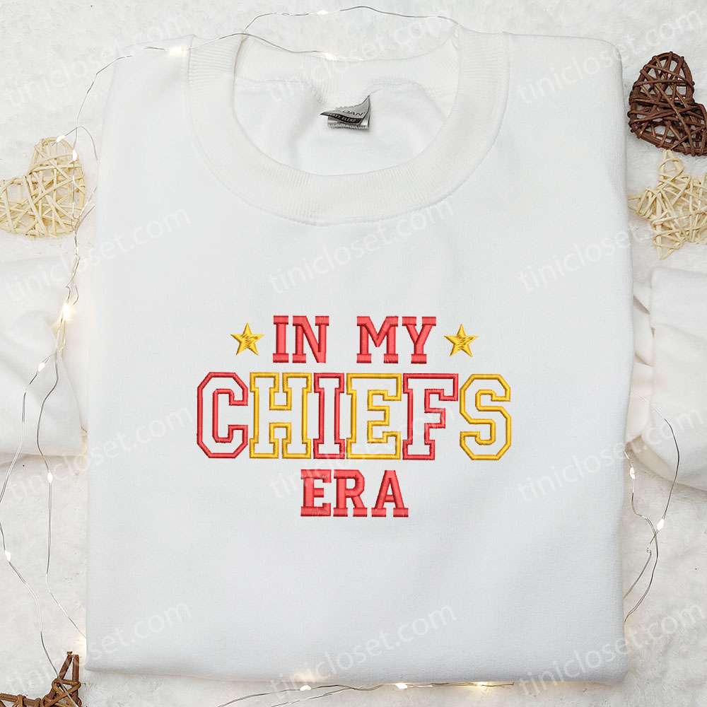 Shop In My Chiefs Era Taylor Embroidered Shirt, Sports Embroidered Hoodie, Best Gift Idea today from my store, 100 percent satisfaction guaranteed. Also available: Shirts, Long Sleeve, Hoodie, Ladies Tee.... ✓ Unique designs ✓ Large assortment ✓ Easy 30 day return policy. We normally ship all items within 2 - 4 business days after payment is received.Packages usually arrive within 6 - 15 business days. International shipping times vary by location, and usually ranges from 2 - 5 weeks.