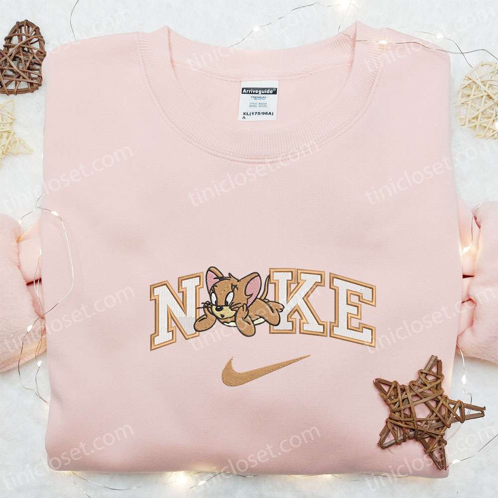 Nike X Jerry Mouse Smile Embroidered Shirt, Tom And Jerry Cartoon Embroidered Shirt, Custom Nike Embroidered Shirt