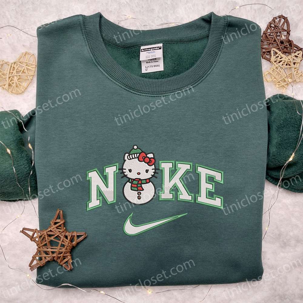 Nike X Kitty Elf Embroidered Hoodie, Hello Kitty Cartoon Embroidered Shirt, Christmas Embroidered Hoodie