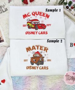 Mcqueen And Mater Christmas Team Cars Disney Characters Embroidered Couples Shirts