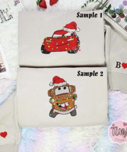 Mcqueen And Mater Christmas Cars Disney Characters Embroidered Couples Shirts