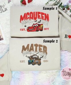 Mcqueen And Mater Halloween Style Embroidered Shirts, Disney Cars Characters Embroidered Couples Shirts