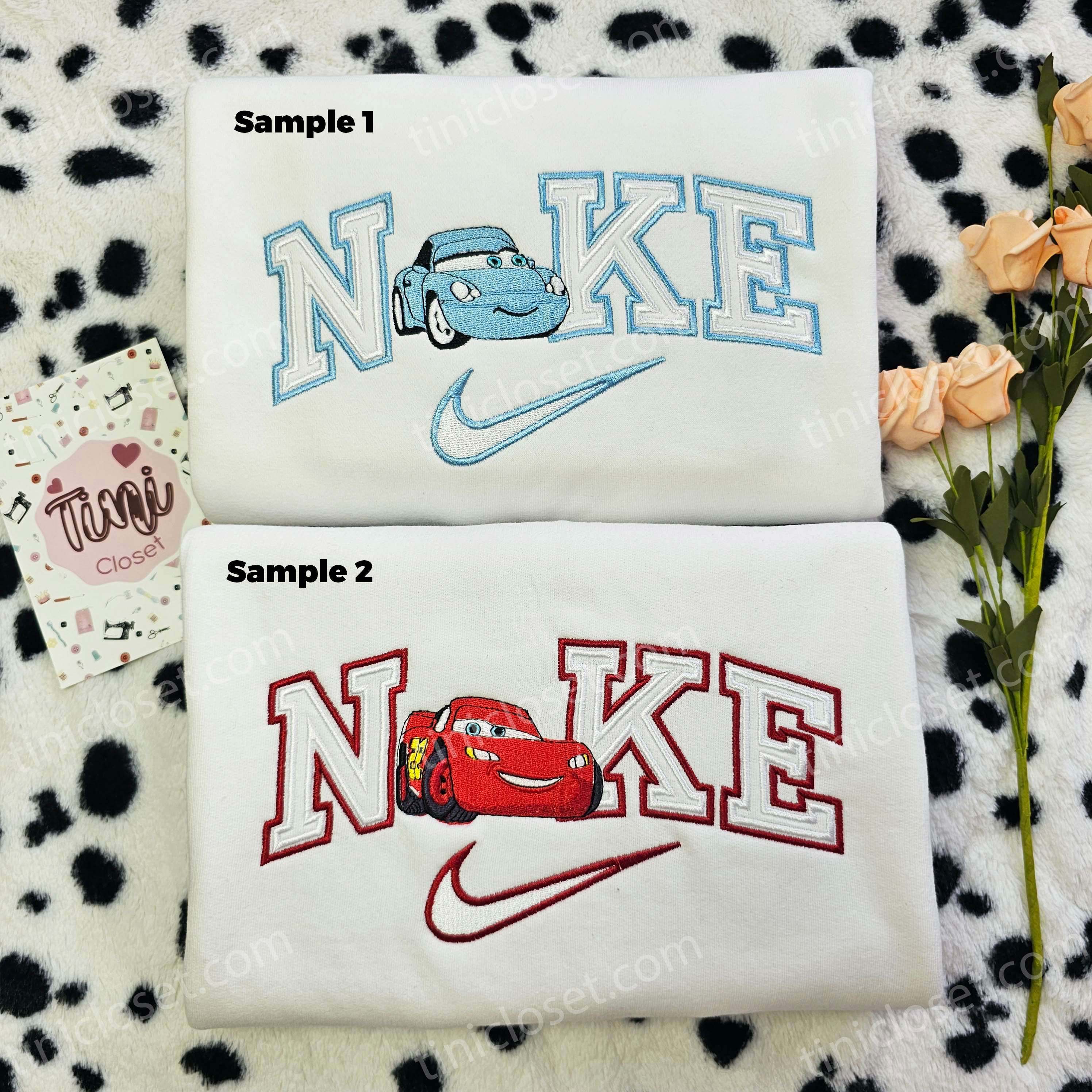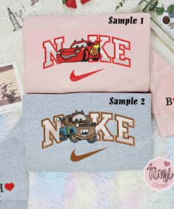 Mcqueen And Mater Halloween Style X Nike Embroidered Shirts, Disney Cars Characters Embroidered Couples Shirts
