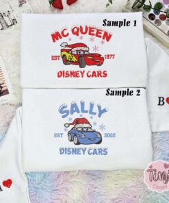 Mcqueen And Sally Christmas Cars Disney Characters Embroidered Couples Shirts