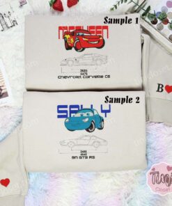 Mcqueen And Sally Embroidered Shirts, Disney Cars Characters Embroidered Couples Shirts