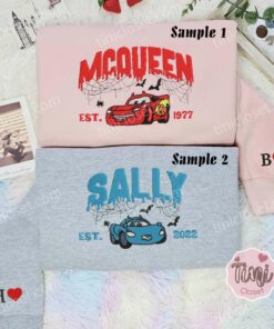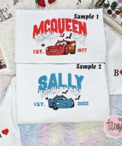 Mcqueen And Sally Halloween Style Embroidered Shirts, Disney Cars Characters Embroidered Couples Shirts