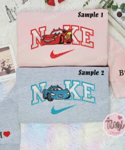 Mcqueen And Sally Halloween Style X Nike Embroidered Shirts, Disney Cars Characters Embroidered Couples Shirts
