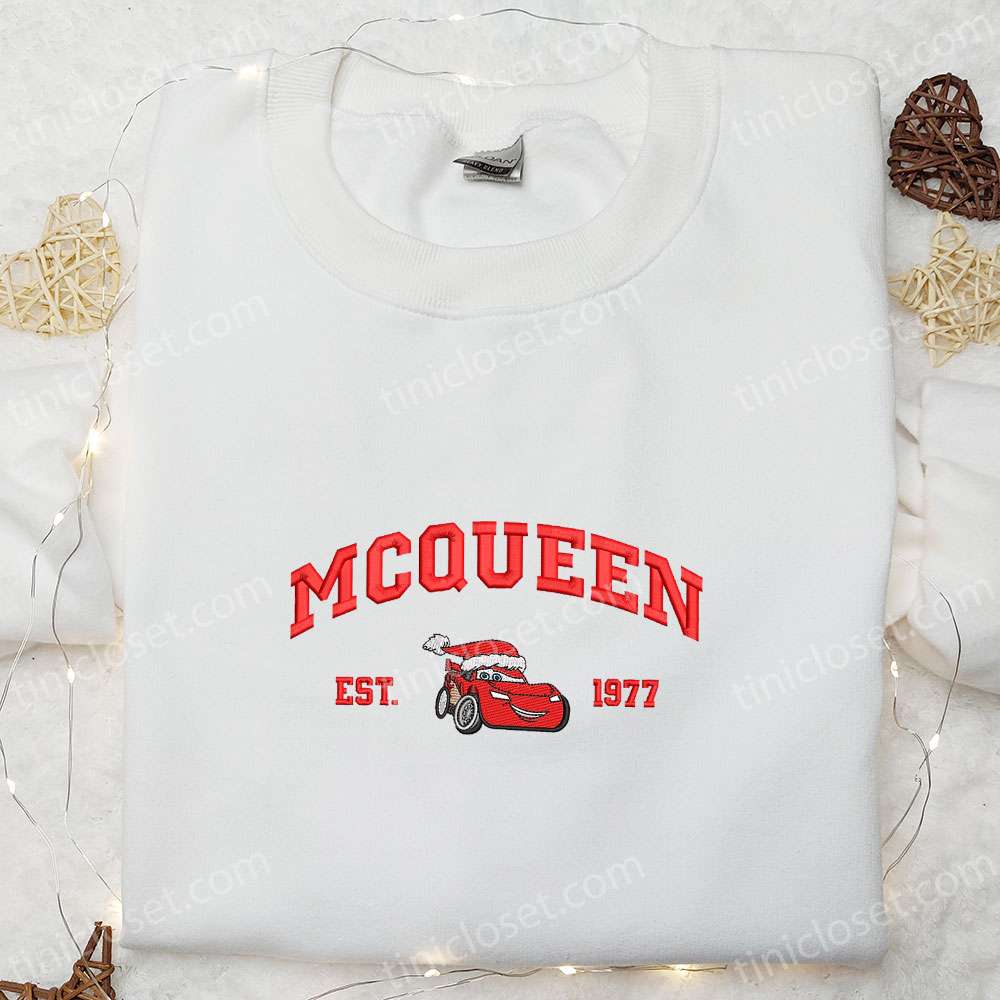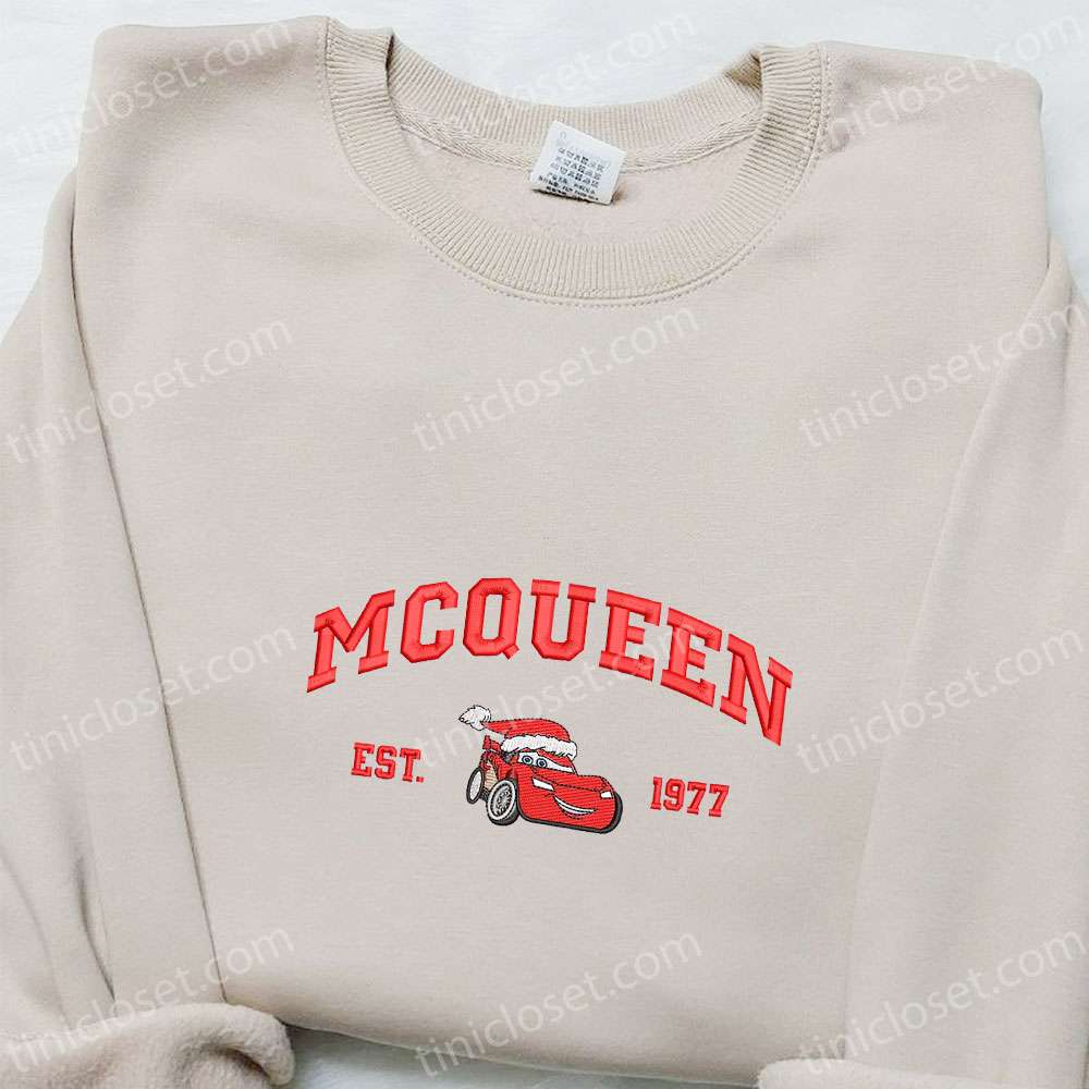 Mcqueen Est 1977 Xmas Embroidered Shirt, Disney Pixar Cars Embroidered Hoodie, Christmas Embroidered Sweatshirt