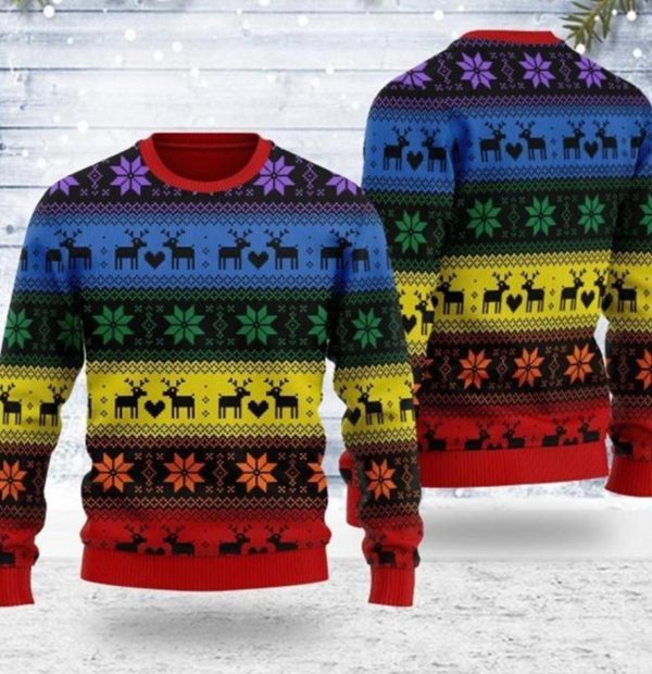 Merry Christmas Unisex Rainbow Deer Lgbt 3d Apparel Ugly Sweater