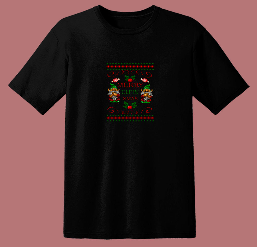 Merry Elfin Funny Santa Elf Christmas 80s T Shirt