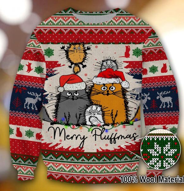 Merry Fluffmas Fluffy Christmas Cats Ugly Sweater