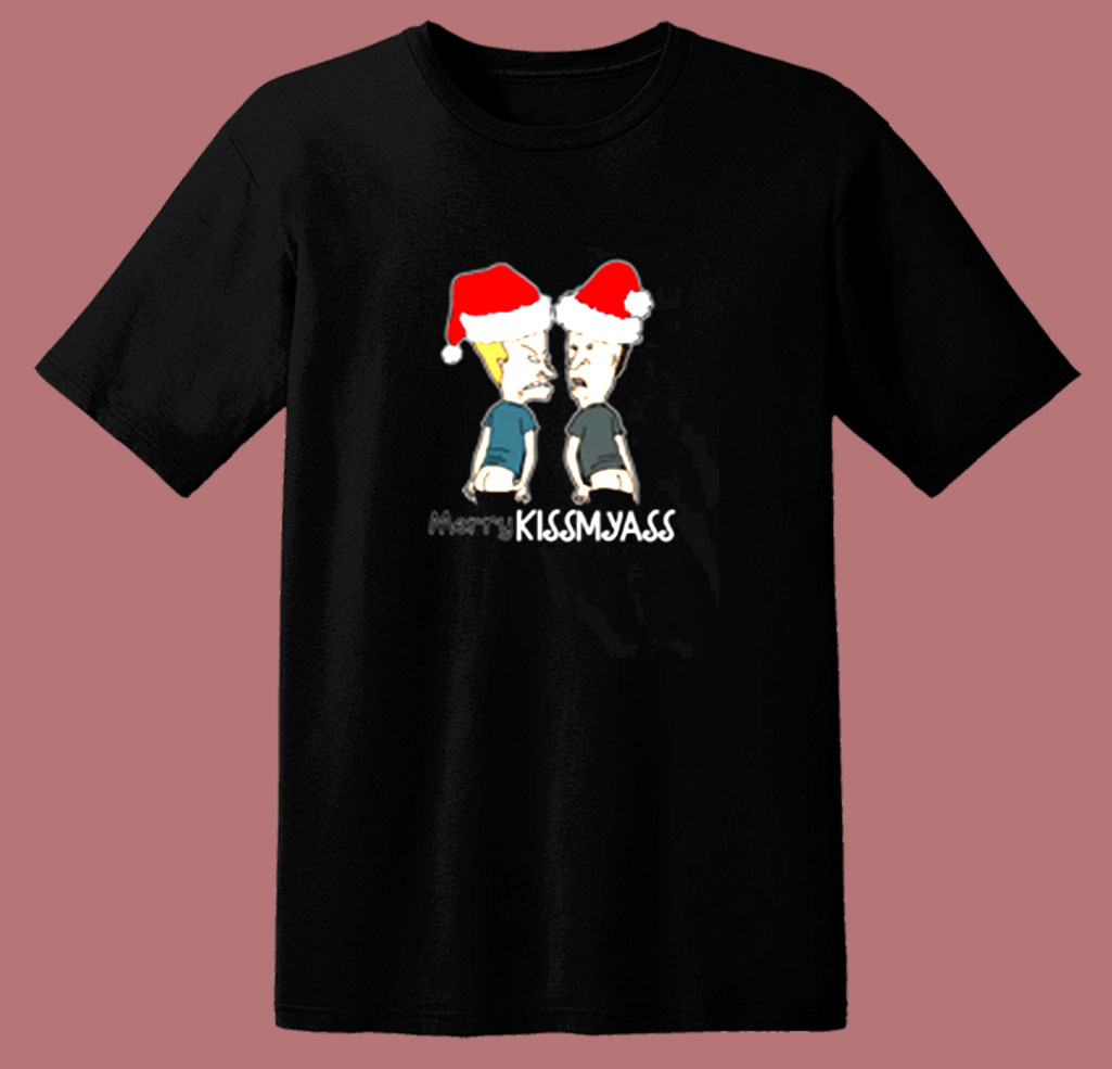 Merry Kissmyass Kiss My Ass Beavis And Butt Head Christmas 80s T Shirt
