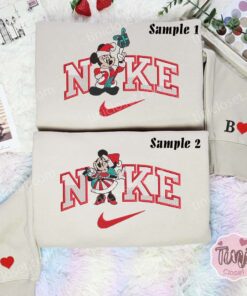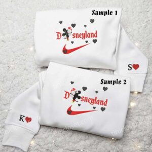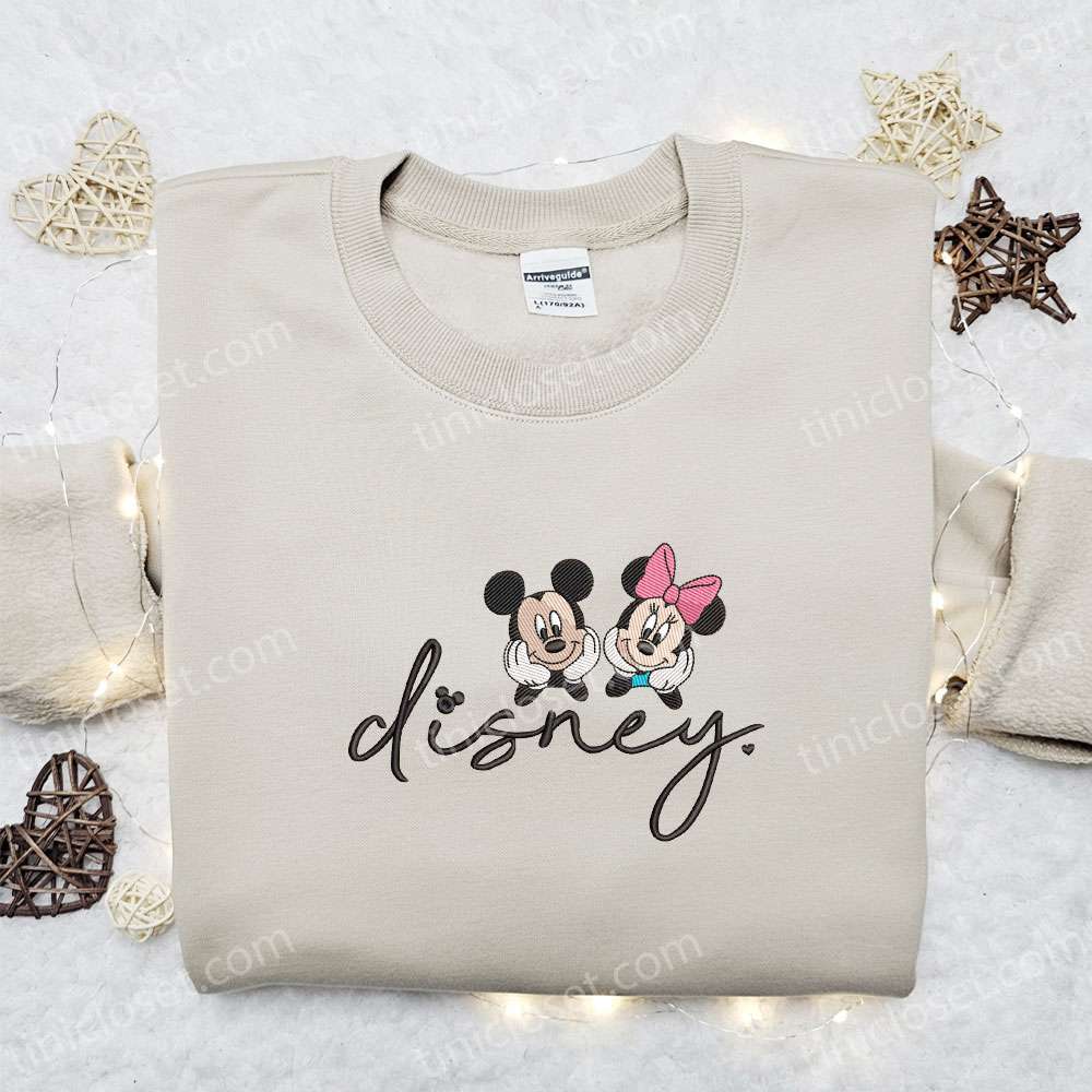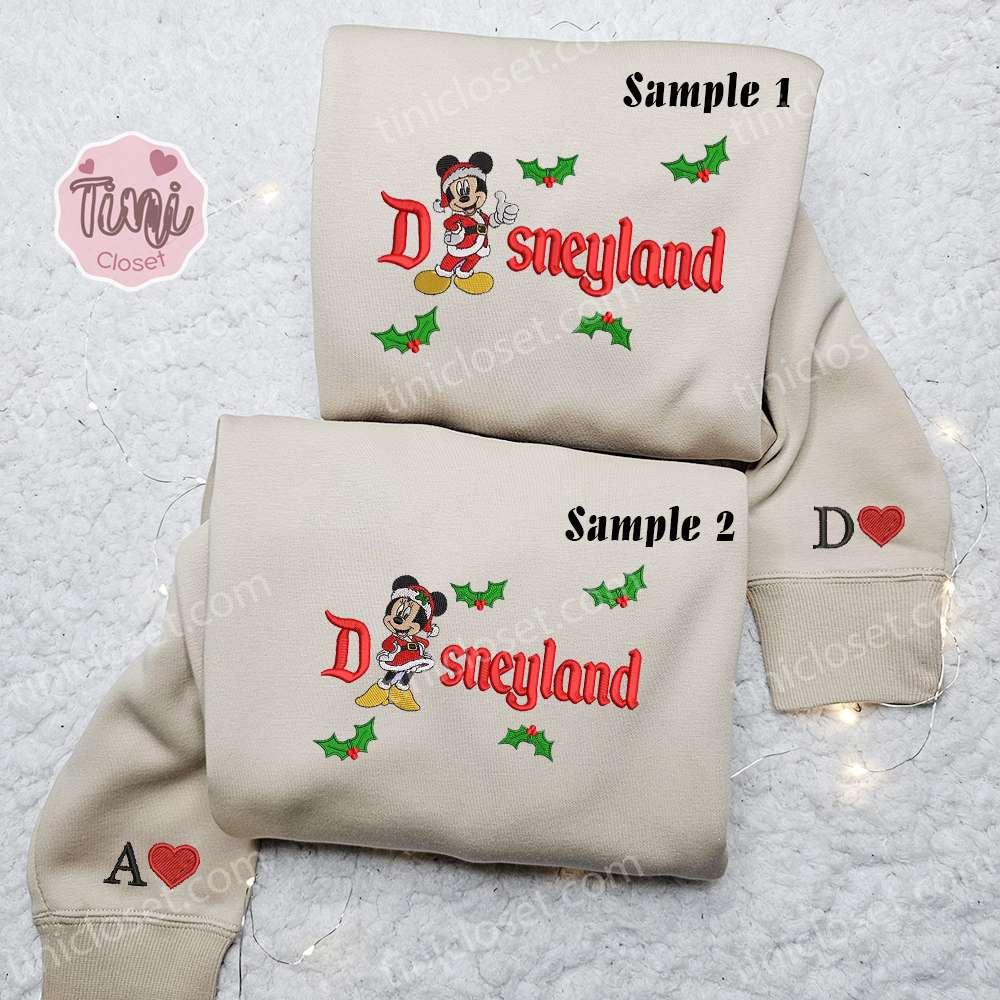 Mickey And Minnie Disneyland Christmas Embroidered Couple Shirt, Disney Characters Embroidered Shirt, Christmas Embroidered Hoodie
