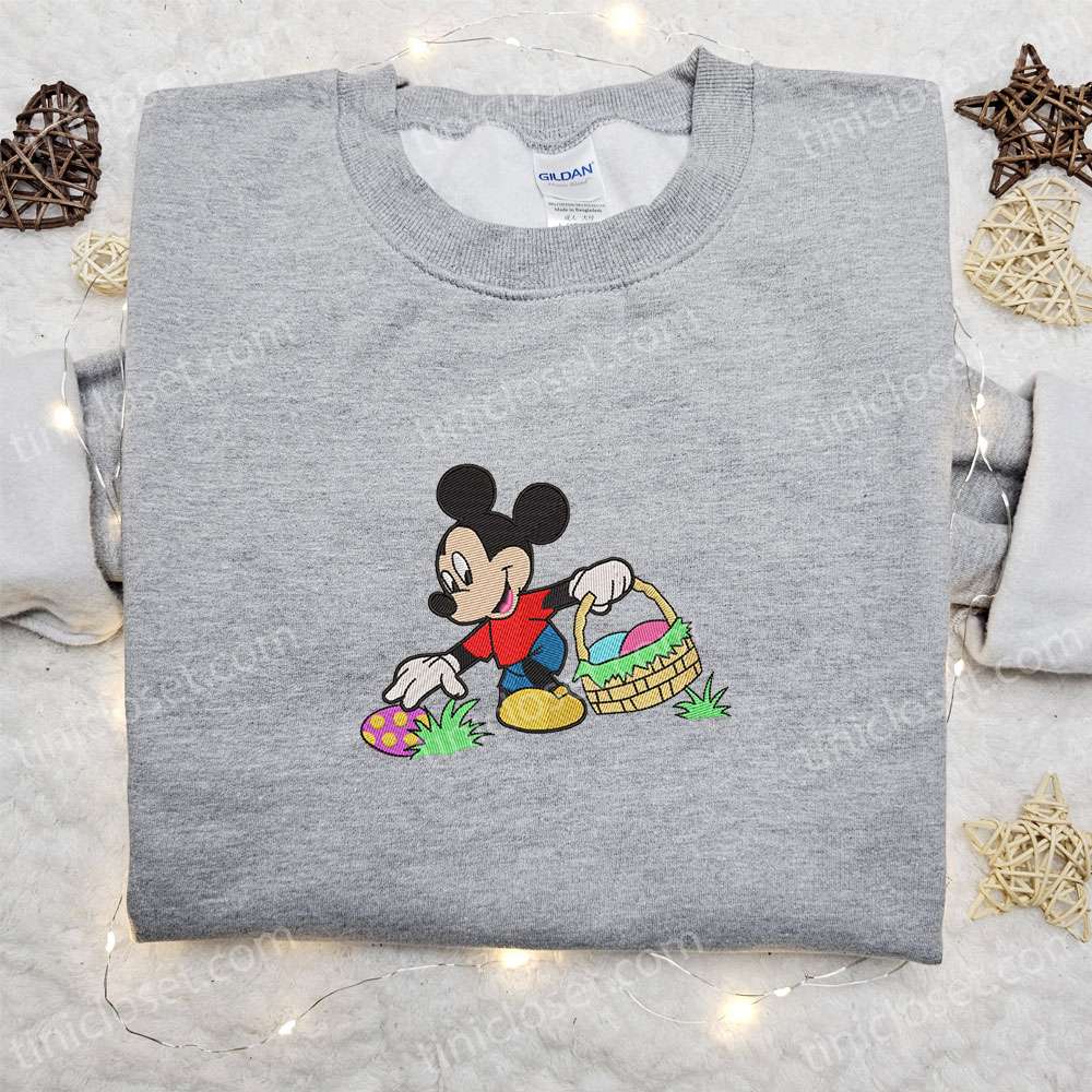Mickey Collecting Easter Eggs Embroidered Shirt, Disney Characters Embroidered Hoodie, Thanksgiving Day Gift Ideas