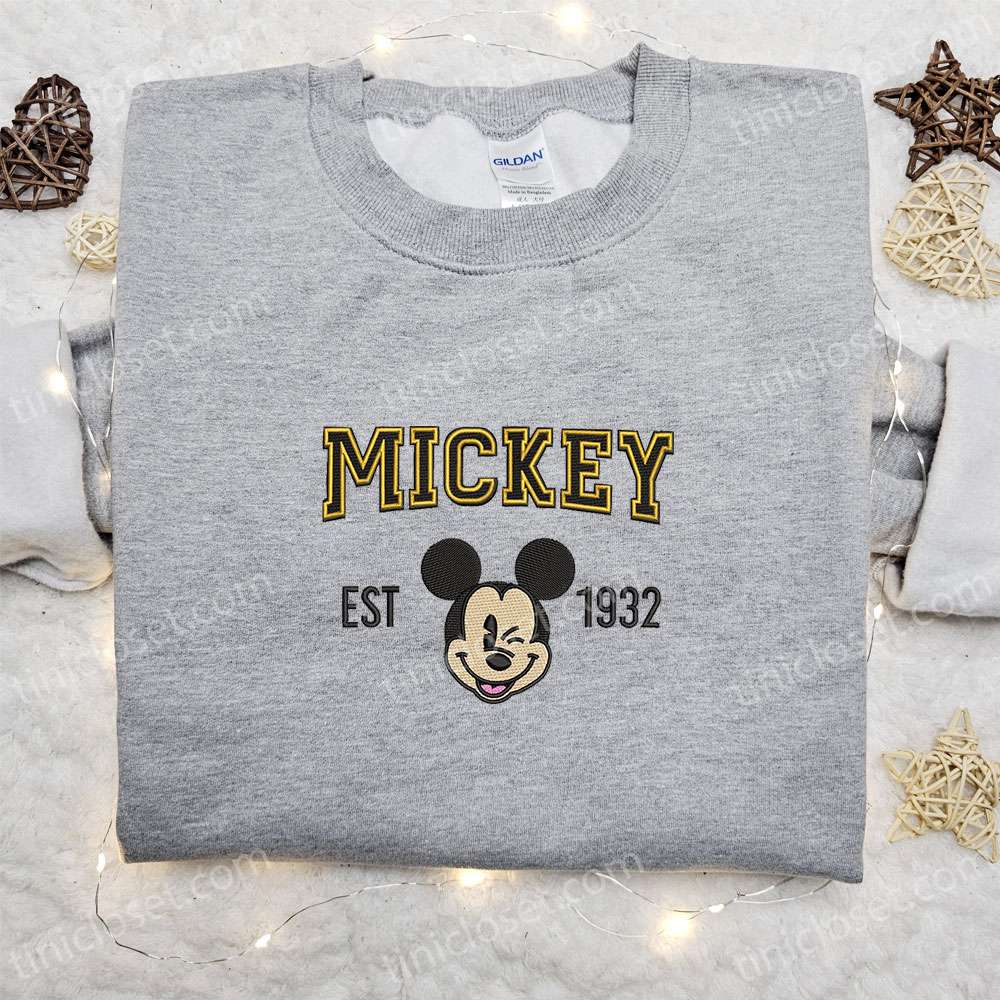 Mickey Est 1932 Embroidered Shirt, Disney Characters Embroidered Hoodie, Best Gift Ideas