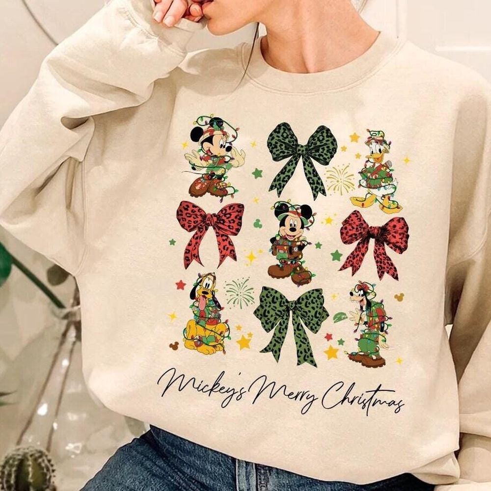 Mickey Friends Merry Christmas Light Leopard Print Bows Vuitino Apparel