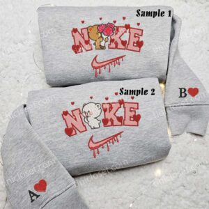 Milk Bear X Nike Embroidered Shirt, Couple Embroidered Hoodie, Valentine Embroidered T-shirt