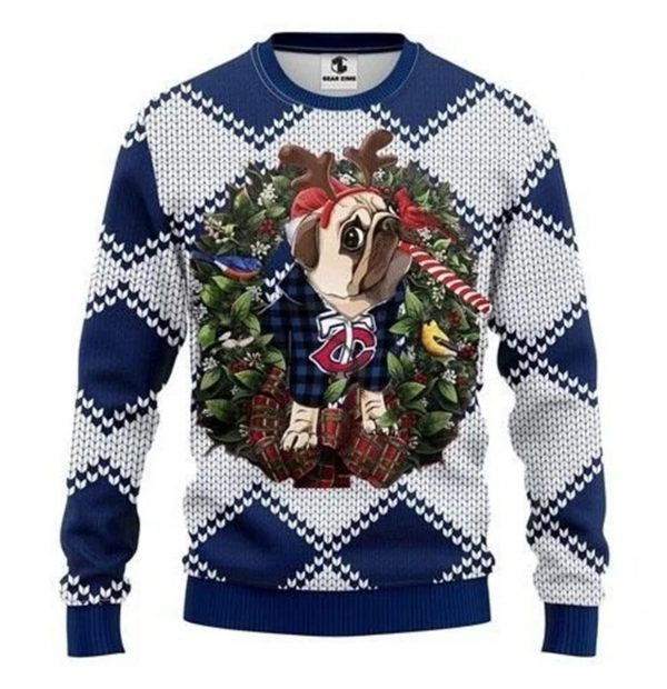 Minnesota Twins Pug Dog Christmas For Fans Ugly Christmas Sweater