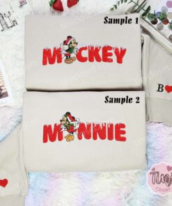 Minnie And Mickey Christmas Embroidered Couples Shirts