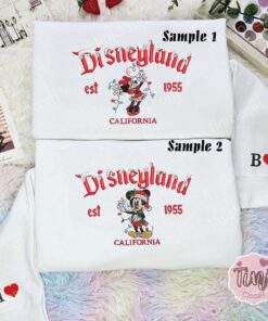 Minnie And Mickey Christmas Disneyland Embroidered Couples Shirts