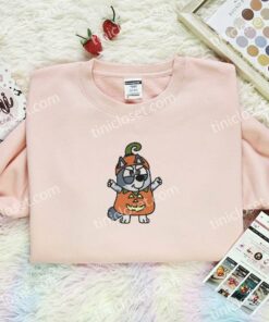 Muffin Dog In Halloween Pumpkin Costume Embroidered Shirt, Bluey Cartoon Embroidered Hoodie