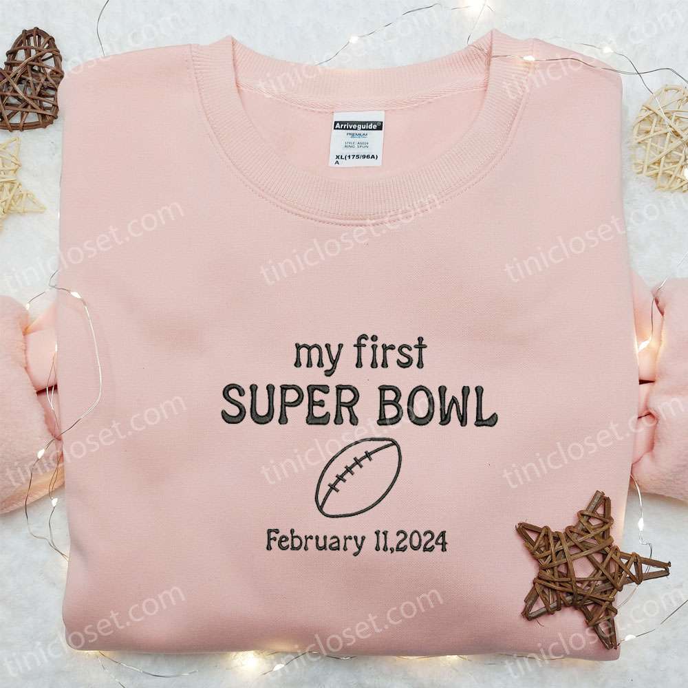 My First Super Bowl Embroidered Shirt, Nfl Sports Embroidered Hoodie, Best Gift Idea