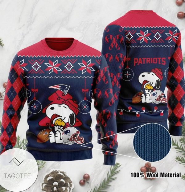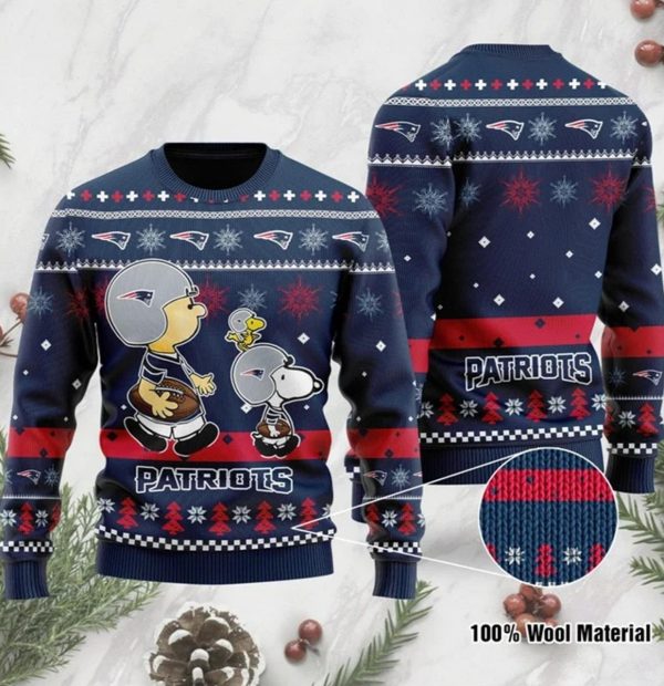 New England Patriots Funny Charlie Brown Peanuts Snoopy Ugly Christmas Sweater Holiday Party