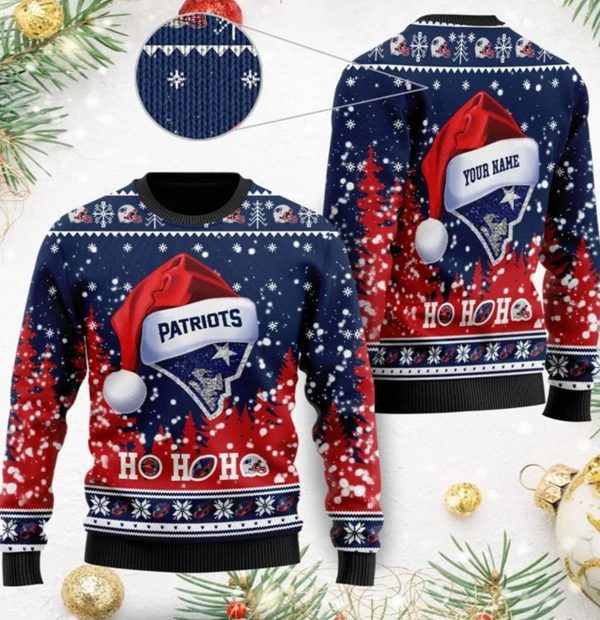 New England Patriots Symbol Wearing Santa Claus Hat Ho Ho Ho Personalized Ugly Christmas Sweater