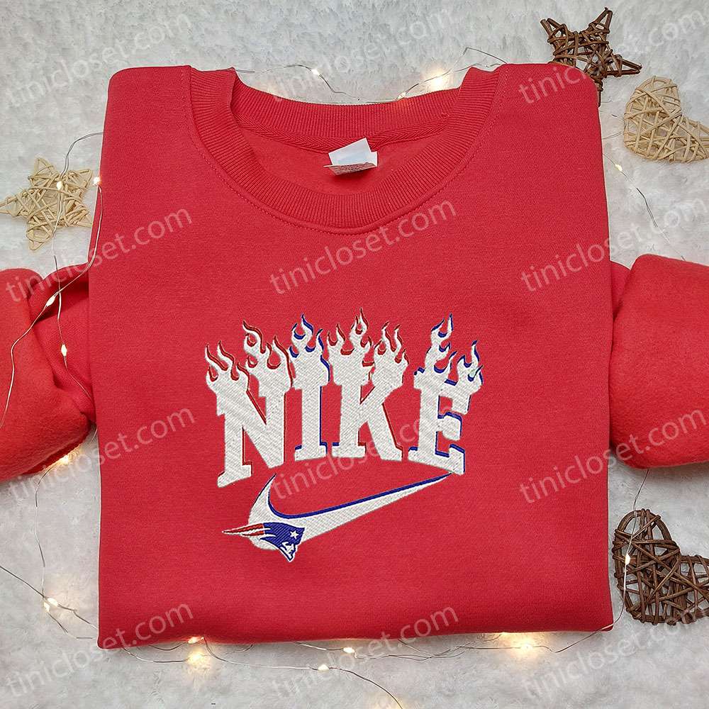 New England Patriots X Nike Flame Embroidered Shirt, Nfl Sports Embroidered Shirt, Nike Inspired Embroidered Hoodie