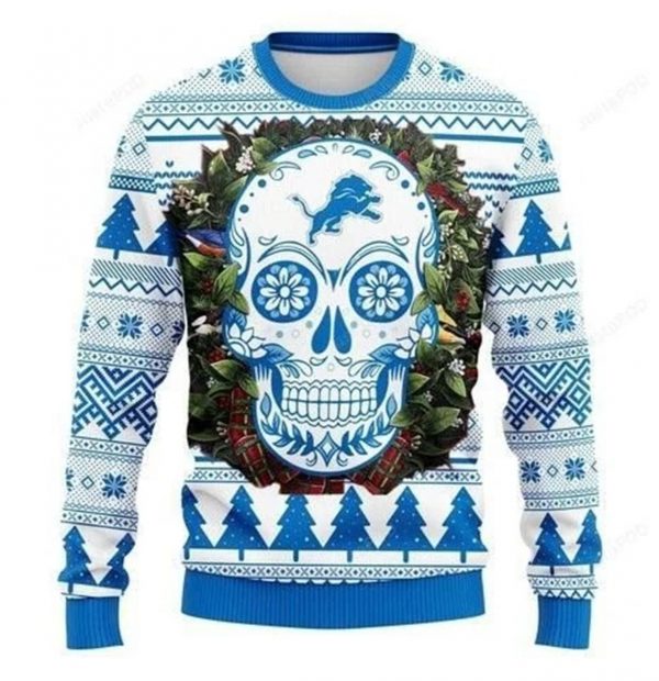 Nfl Detroit Lions Skull Flower Ugly Christmas Sweater