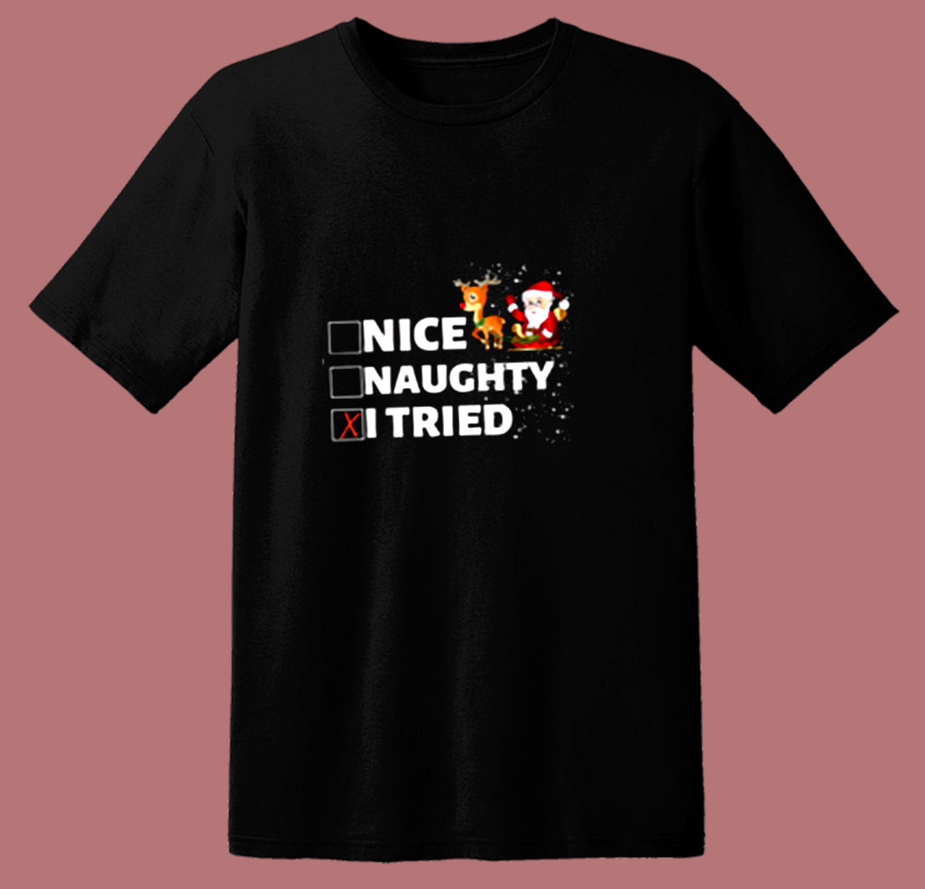 Nice Naughty I Tried Funny Christmas 80s T Shirt