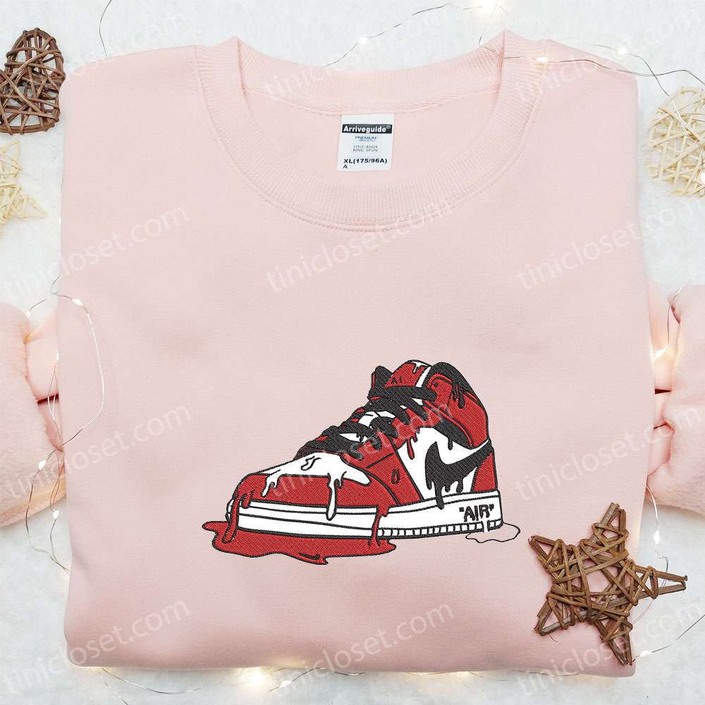 Nike Air Jordan Sneakers Melting Embroidered Shirt, Nike Inspired Embroidered Hoodie, Best Gift Idea