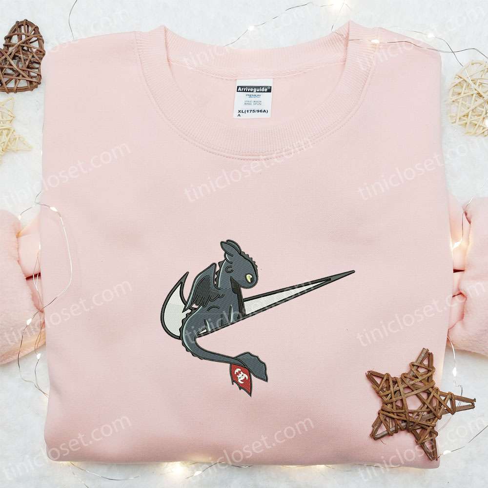Nike Swoosh X Light Fury Embroidered Shirt, How To Train Your Dragon Cartoon Embroidered Hoodie, Nike Inspired Embroidered T-shirt