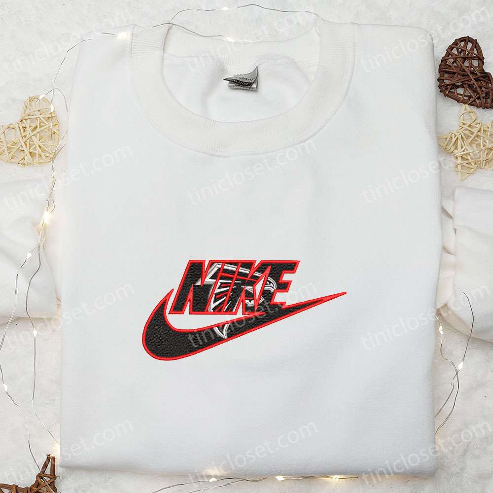 Nike X Atlanta Falcons Logo Embroidered Shirt, Nfl Sports Embroidered Shirt, Nike Inspired Embroidered Shirt