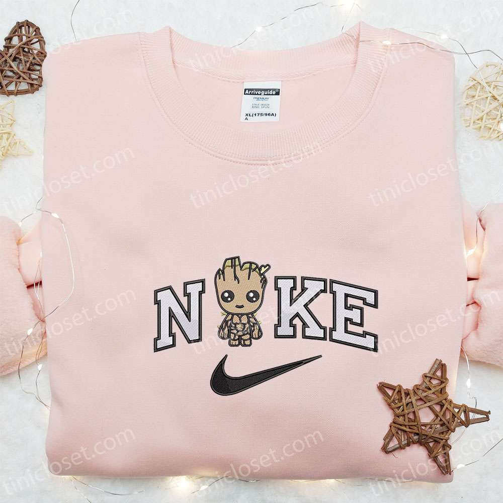 Nike X Baby Groot Embroidered Hoodie, Marvel Movie Embroidered Shirt, Nike Inspired Embroidered Shirt
