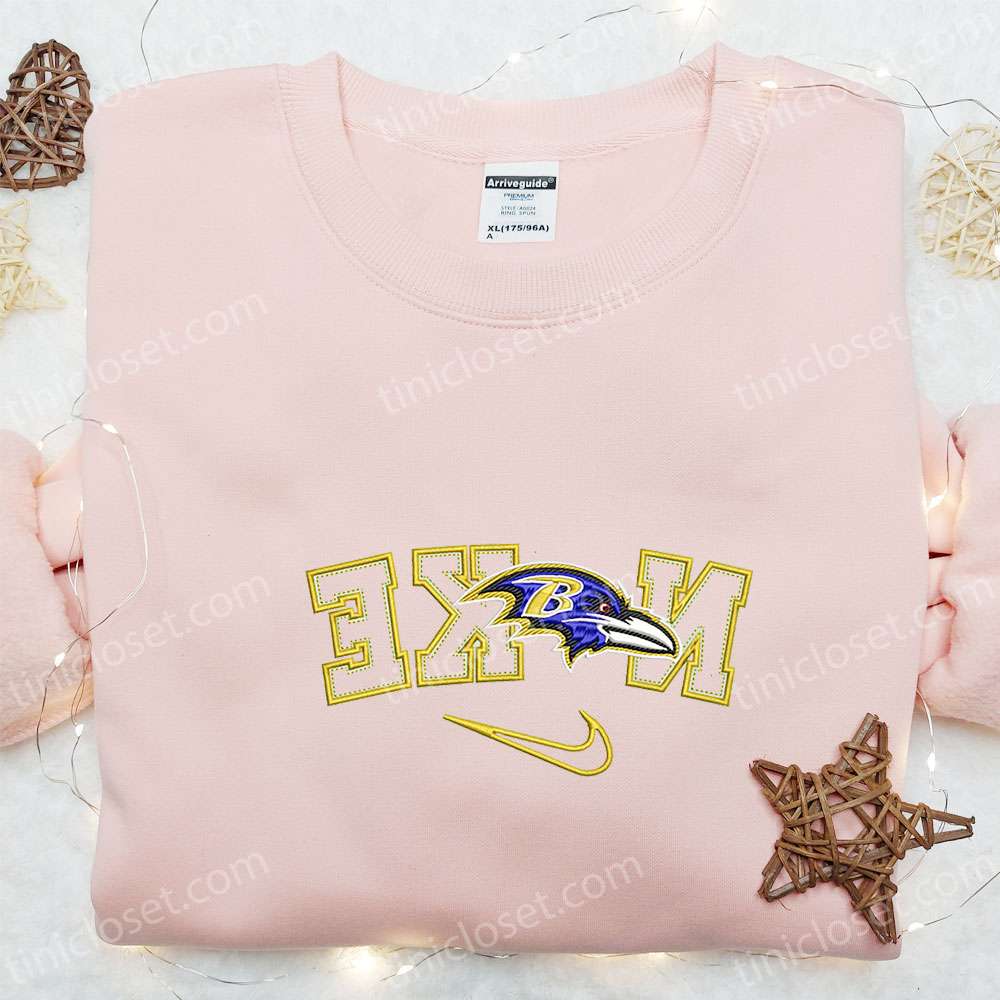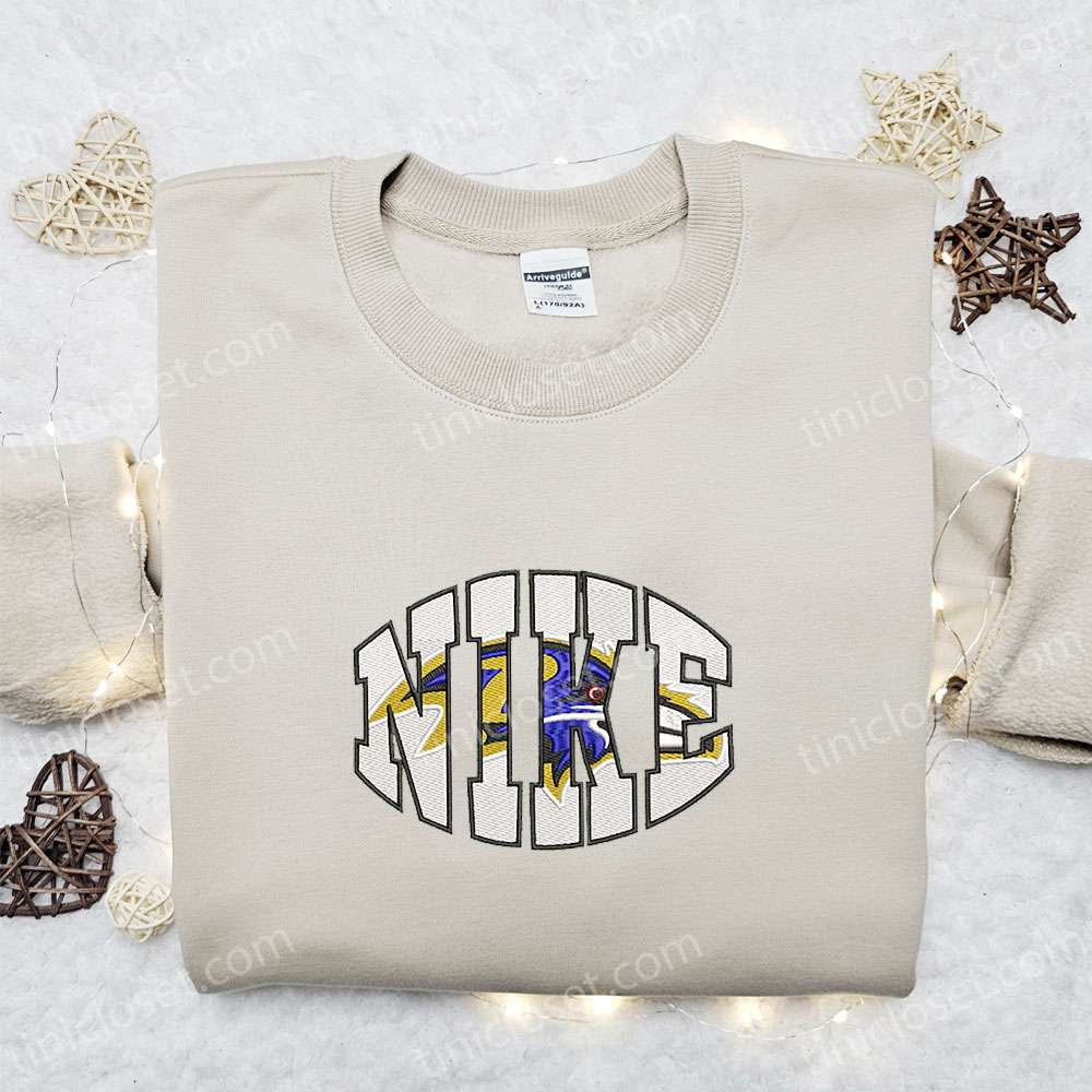 Nike X Baltimore Ravens Embroidered Hoodie, Nfl Sports Embroidered Shirt, Nike Inspired Embroidered Shirt