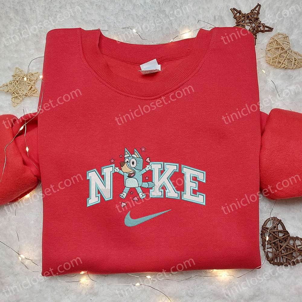 Nike X Bluey And Bingo Valentine Embroidered Shirt, Cartoon Embroidered Sweatshirt, Nike Inspired Embroidered Hoodie