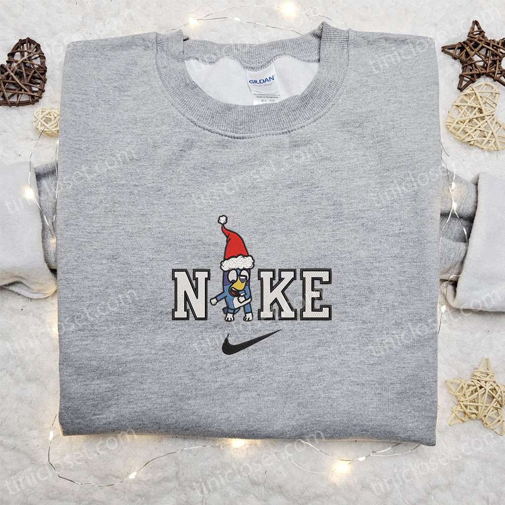 Nike X Bluey Santa Hat Embroidered Shirt, Cartoon Embroidered Hoodie, Best Christmas Gift Ideas