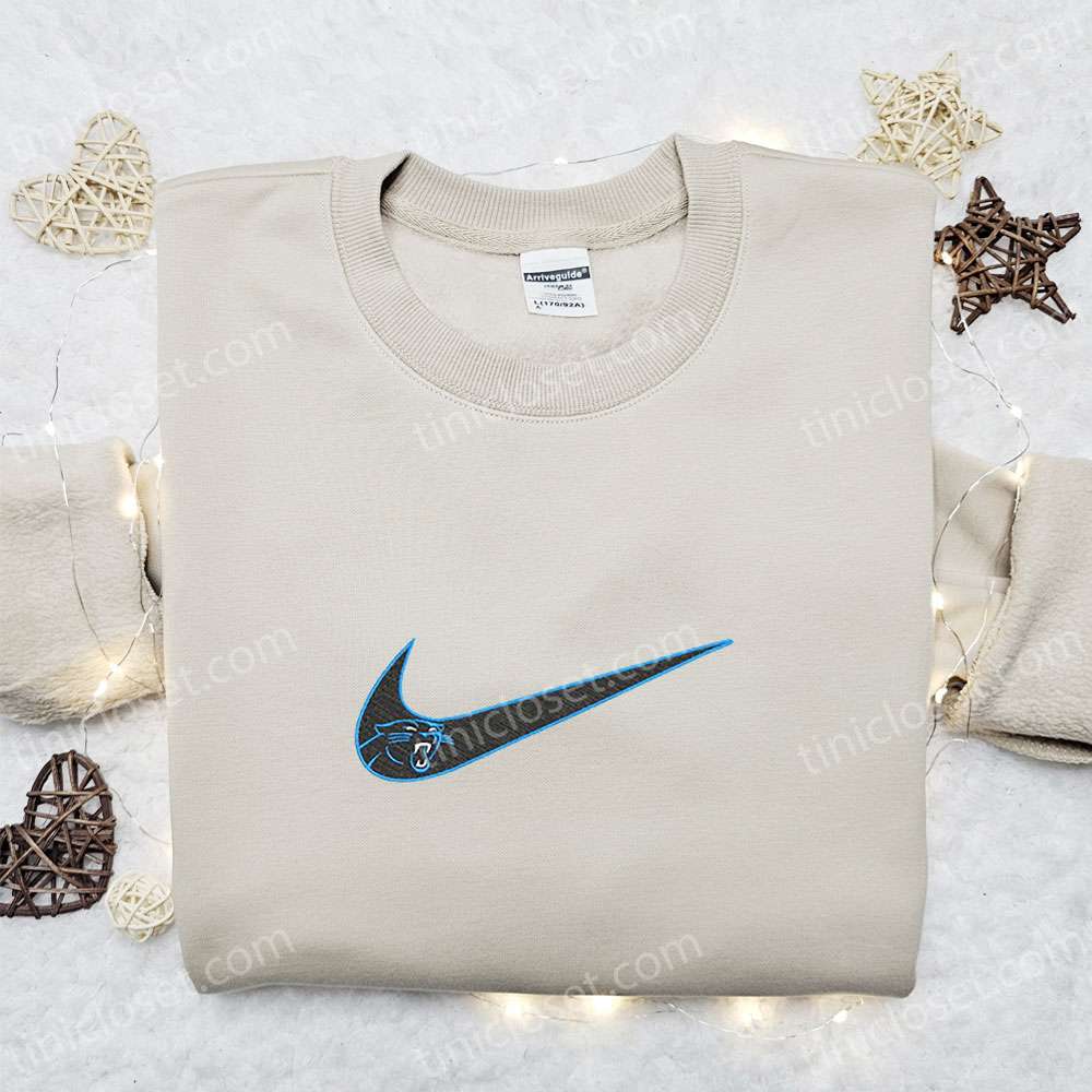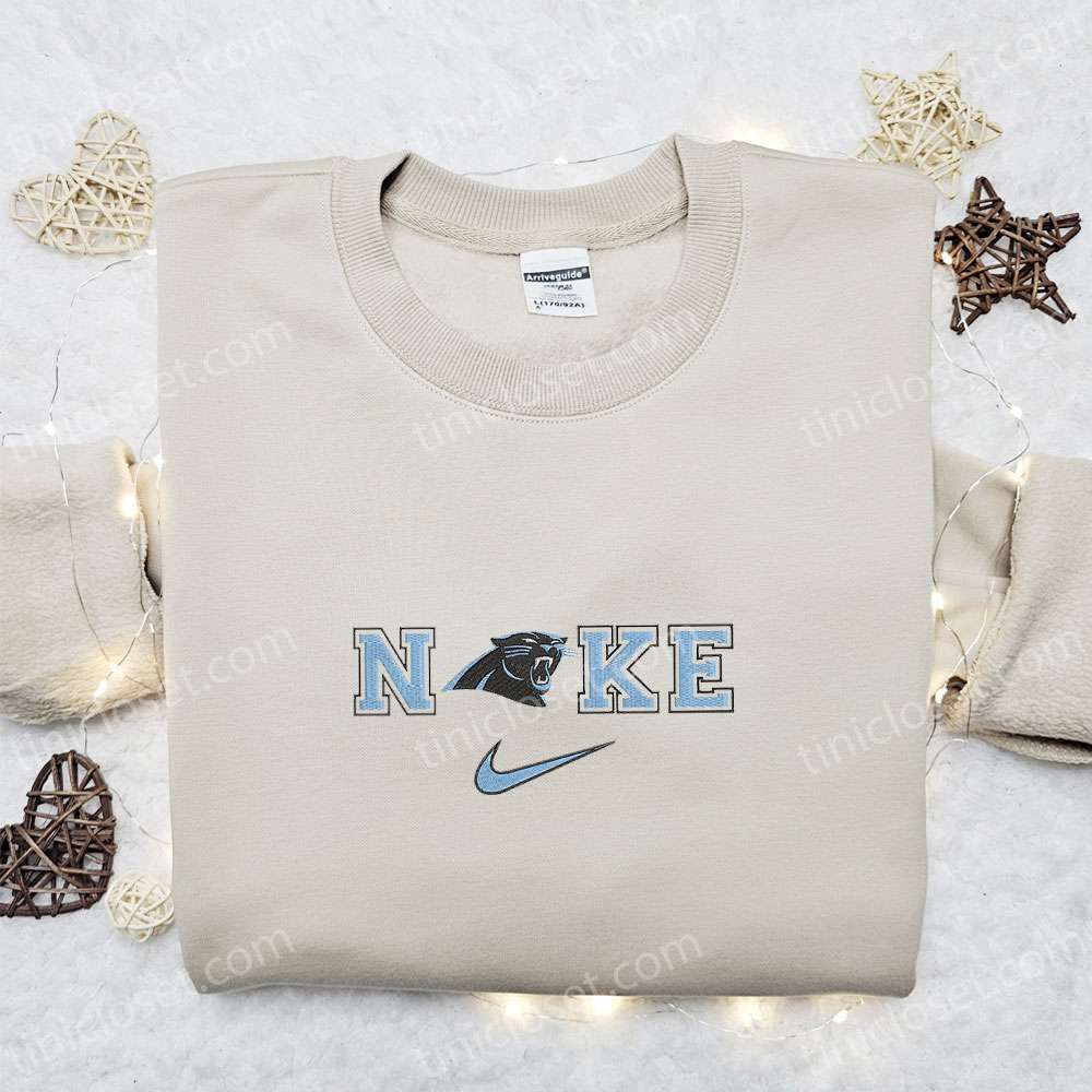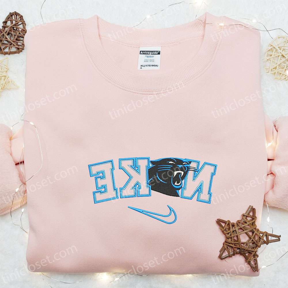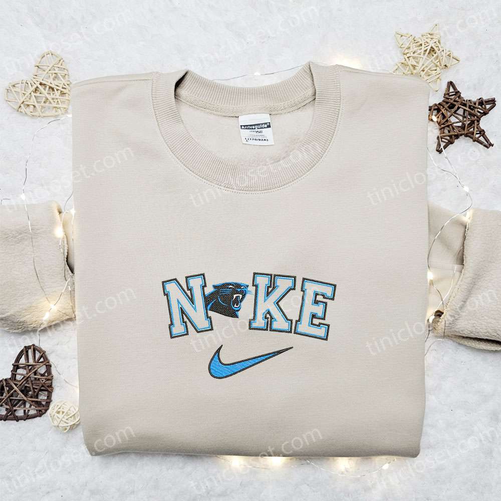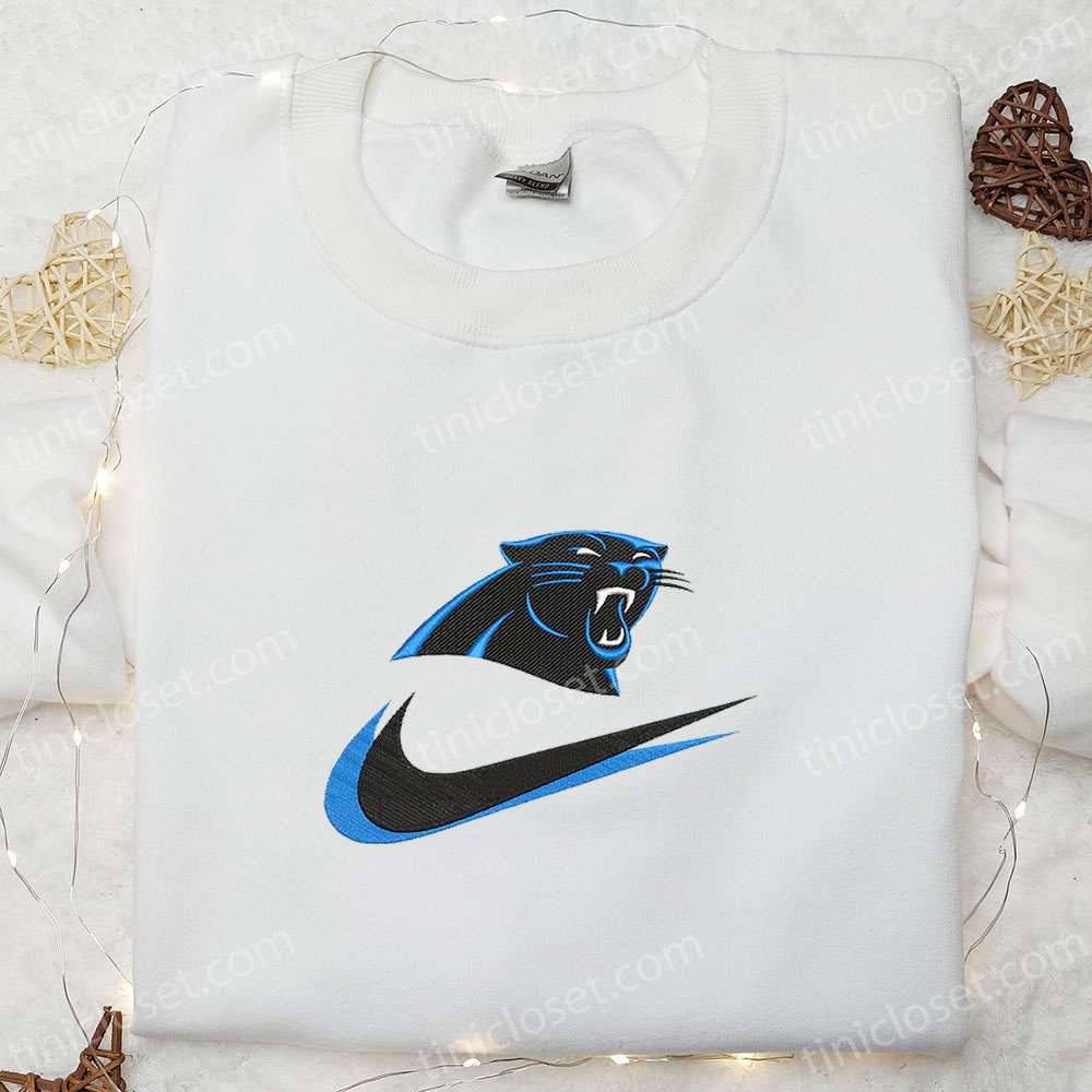 Nike X Carolina Panthers Embroidered Hoodie, Nfl Sports Embroidered Shirt, Nike Inspired Embroidered Shirt