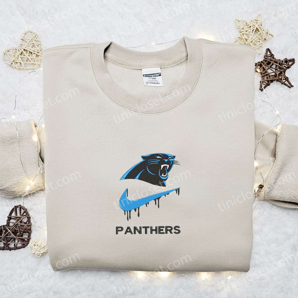 Nike X Carolina Panthers Embroidered Hoodie, Nfl Sports Embroidered T-shirt, Nike Inspired Embroidered T-shirt