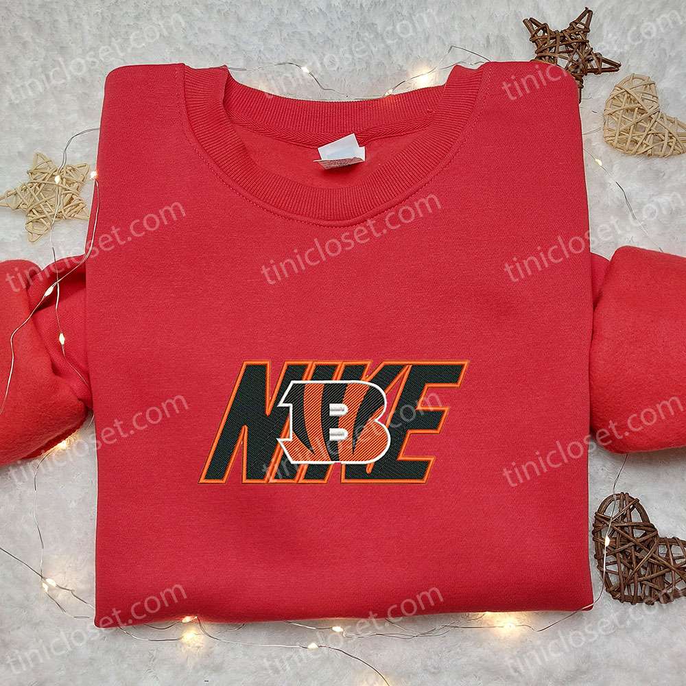Nike X Cincinnati Bengals Embroidered Sweatshirt, Nfl Sports Embroidered Shirt, Custom Nike Embroidered Shirt