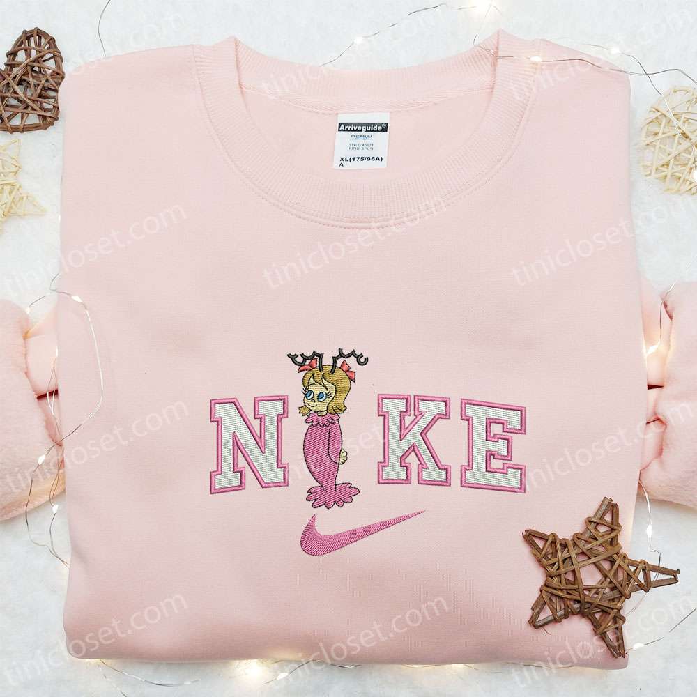 Nike X Cindy Lou Embroidered Shirt, Grinch Cartoon Embroidered Hoodie, Christmas Embroidered T-shirt