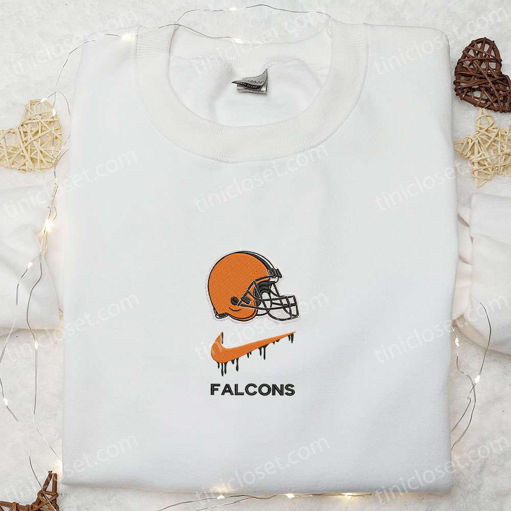 Nike X Cleveland Browns Falcons Embroidered T-shirt, Nfl Sports Embroidered T-shirt, Custom Nike Embroidered T-shirt