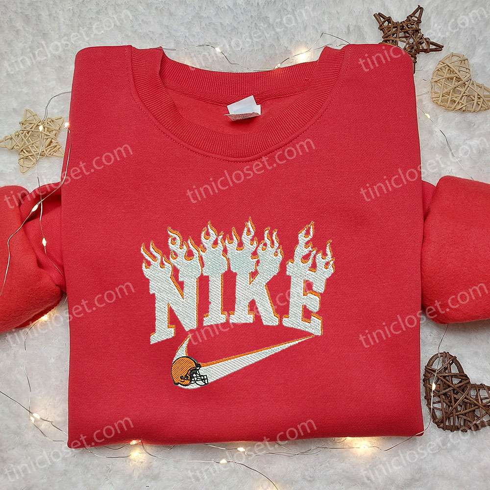 Nike X Cleveland Browns Flame Embroidered Sweatshirt, Nfl Sports Embroidered Sweatshirt, Nike Inspired Embroidered Sweatshirt