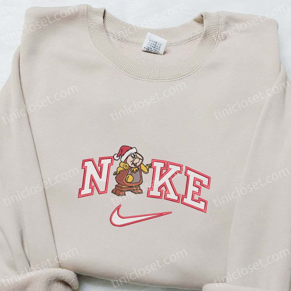Nike X Cogsworth Santa Hat Embroidered Shirt, Disney Beauty And The Beast Embroidered Hoodie, Best Christmas Gift Ideas