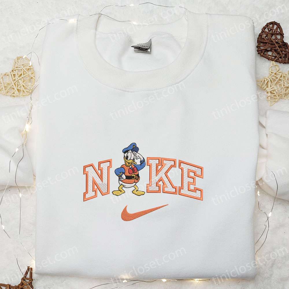 Nike X Cruise Trip Anchor Ship Donald Embroidered Sweatshirt, Disney Characters Embroidered Shirt, Custom Nike Embroidered Shirt