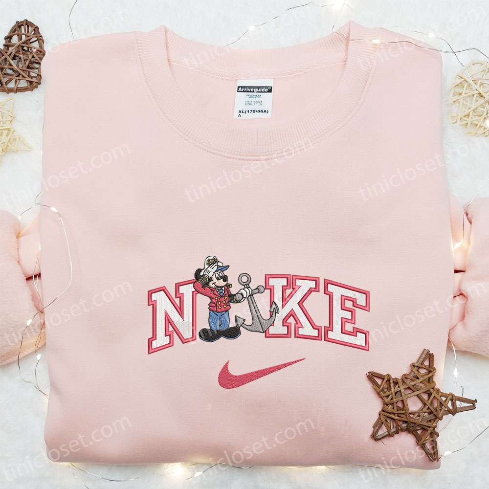 Nike X Cruise Trip Anchor Ship Mickey Embroidered T-shirt, Disney Characters Embroidered Shirt, Nike Inspired Embroidered Shirt