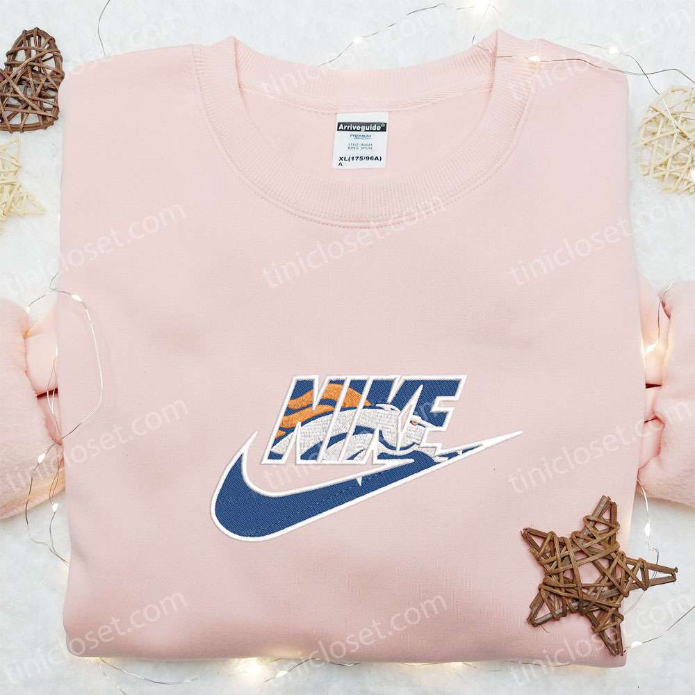 Nike X Denver Broncos Logo Embroidered T-shirt, Nfl Sports Embroidered T-shirt, Nike Inspired Embroidered T-shirt