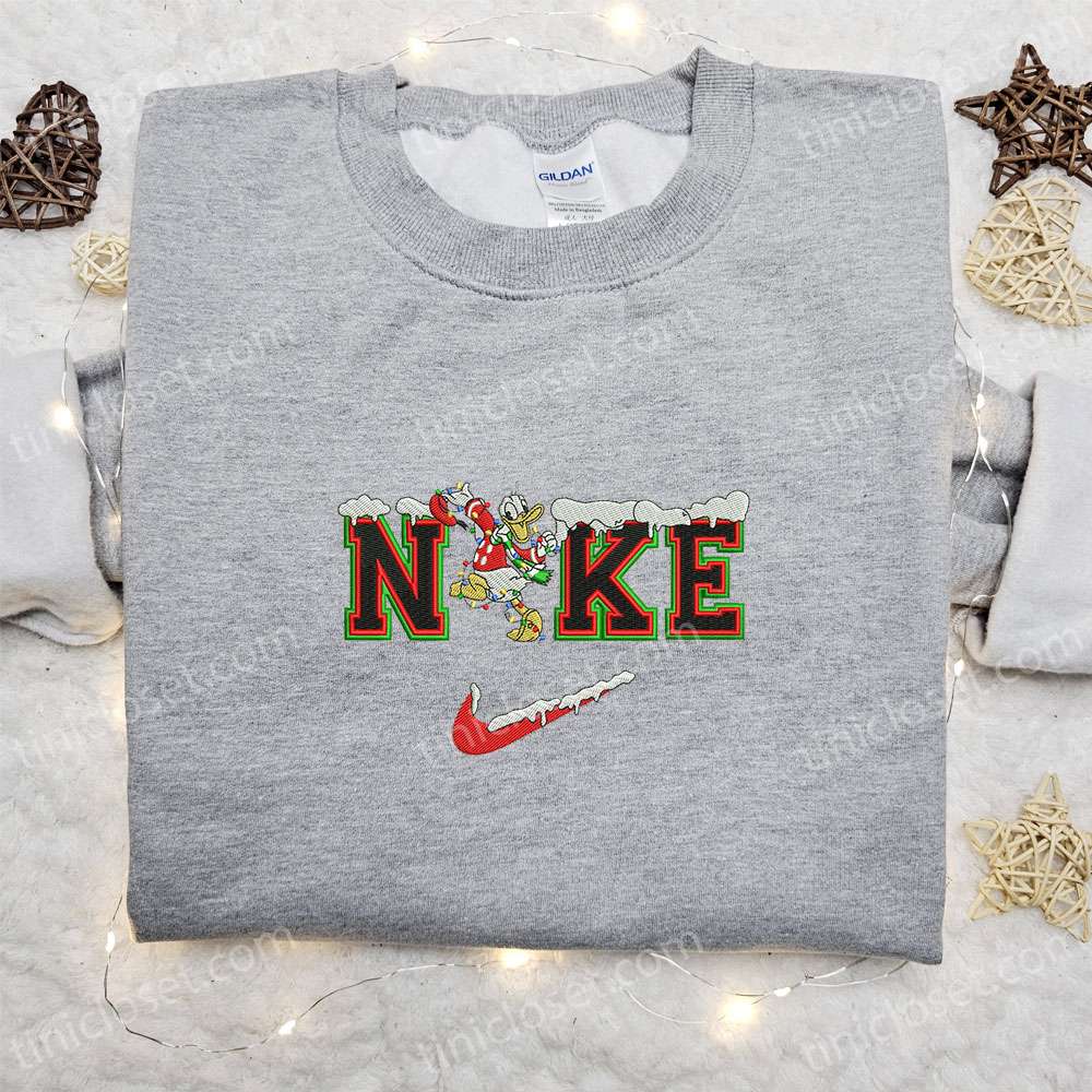 Nike X Donald Xmas Embroidered Sweatshirt, Disney Characters Embroidered T-shirt, Nike Inspired Embroidered Sweatshirt