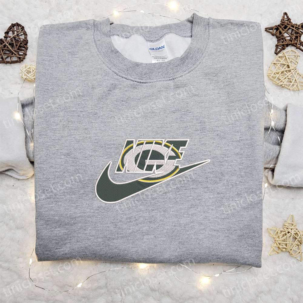 Nike X Green Bay Packers Logo Embroidered Sweatshirt, Nfl Sports Embroidered Sweatshirt, Nike Inspired Embroidered Sweatshirt